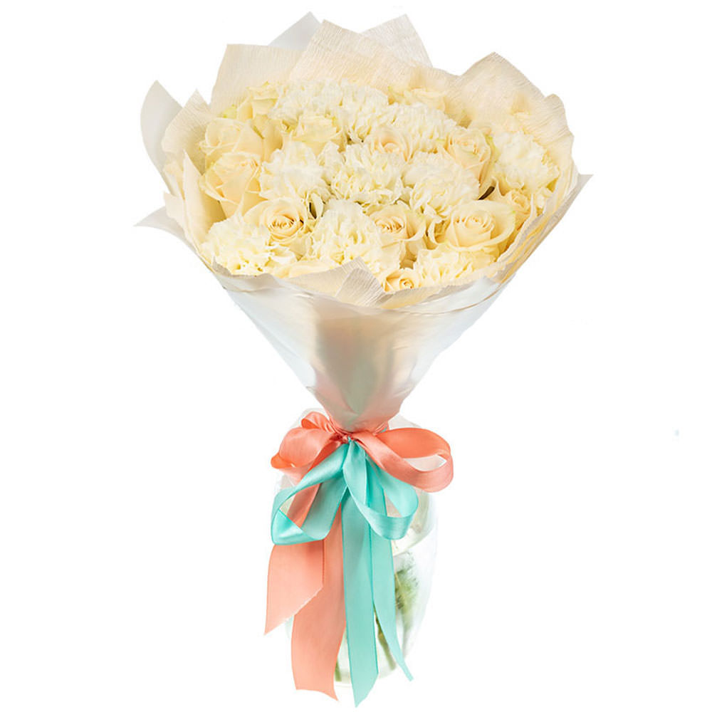 На фото представлен образец. Объем букета зависит от выбранного вами размера. Точное количество цветов и цветовую гамму вы можете уточнить у менеджера по телефону.