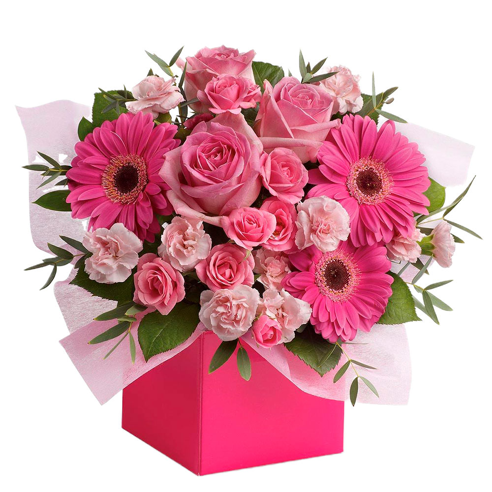 Цветы в коробке «Розовый микс»